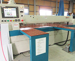 当社で一番活躍している切断機です。 大きな板を切断できます。 変形や異形の切断には向きません。 ミリ単位でお好きな寸法に切断できます。
